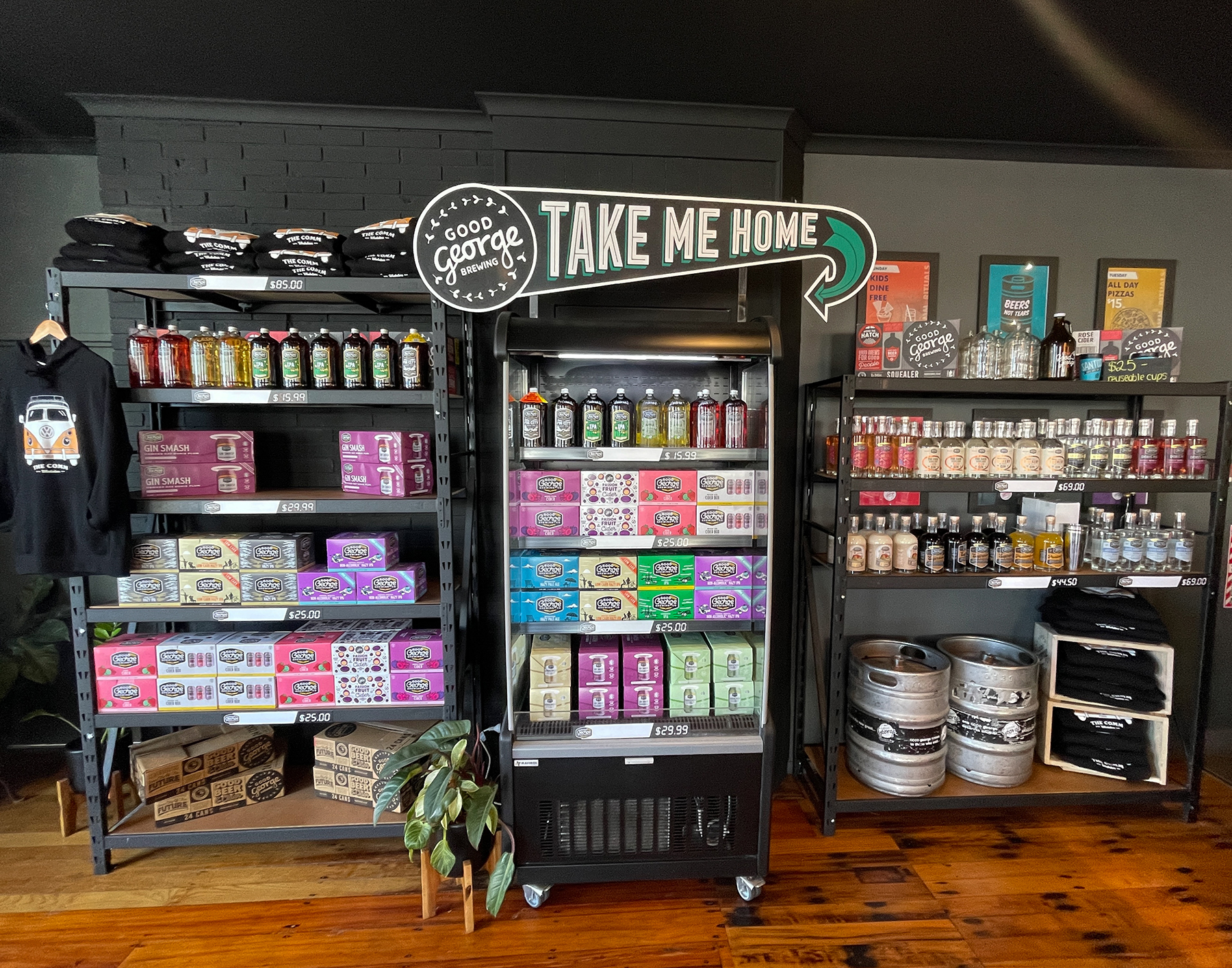 Good George has it all We have a full selection of Good George cans, squealers, cocktails, gins, and vodkas that are stocked and ready for purchase. Take the opportunity to grab some for home and enjoy!